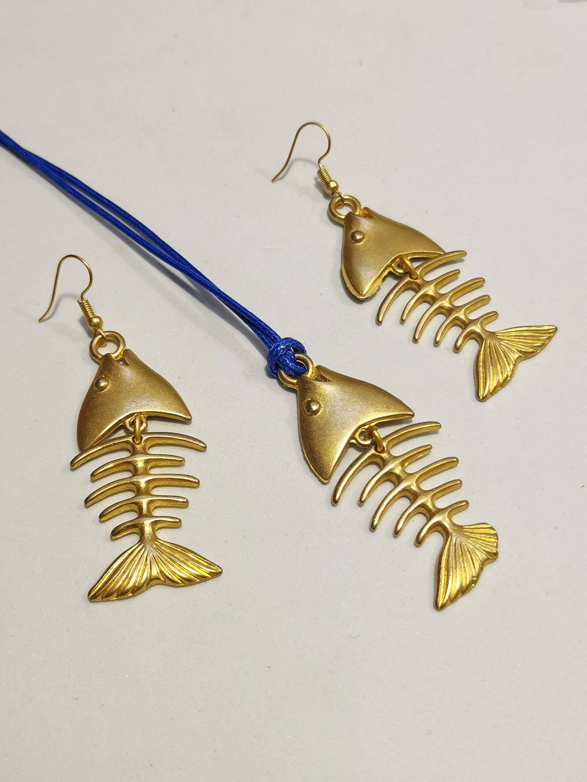 Questo set collana – orecchini con lische di pesce in lega di zama dalla finitura naturale.