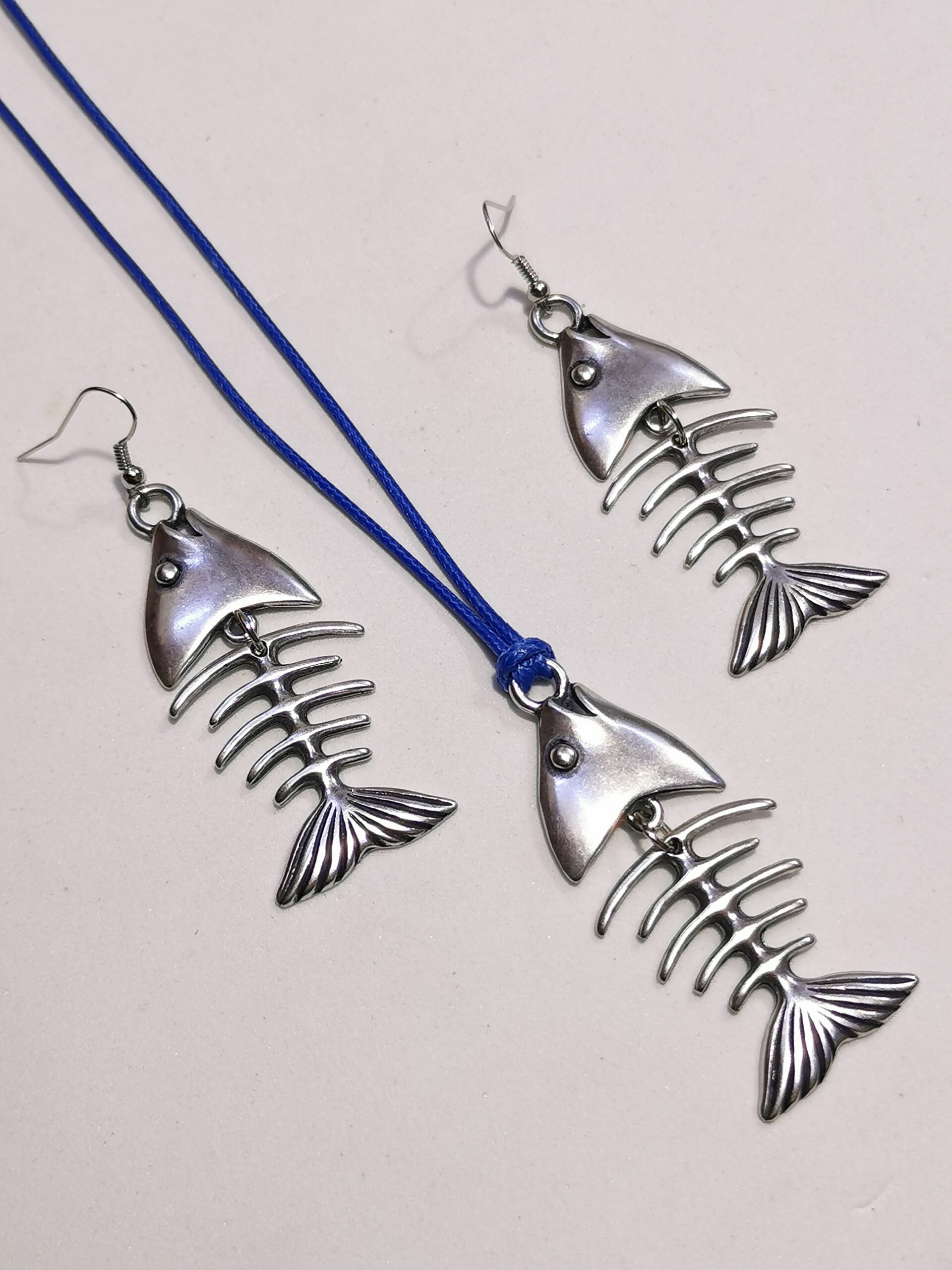 Questo set collana – orecchini a lisca di pesce in lega di zama dalla finitura naturale. La scelta perfetta per aggiungere carattere al proprio look quotidiano.