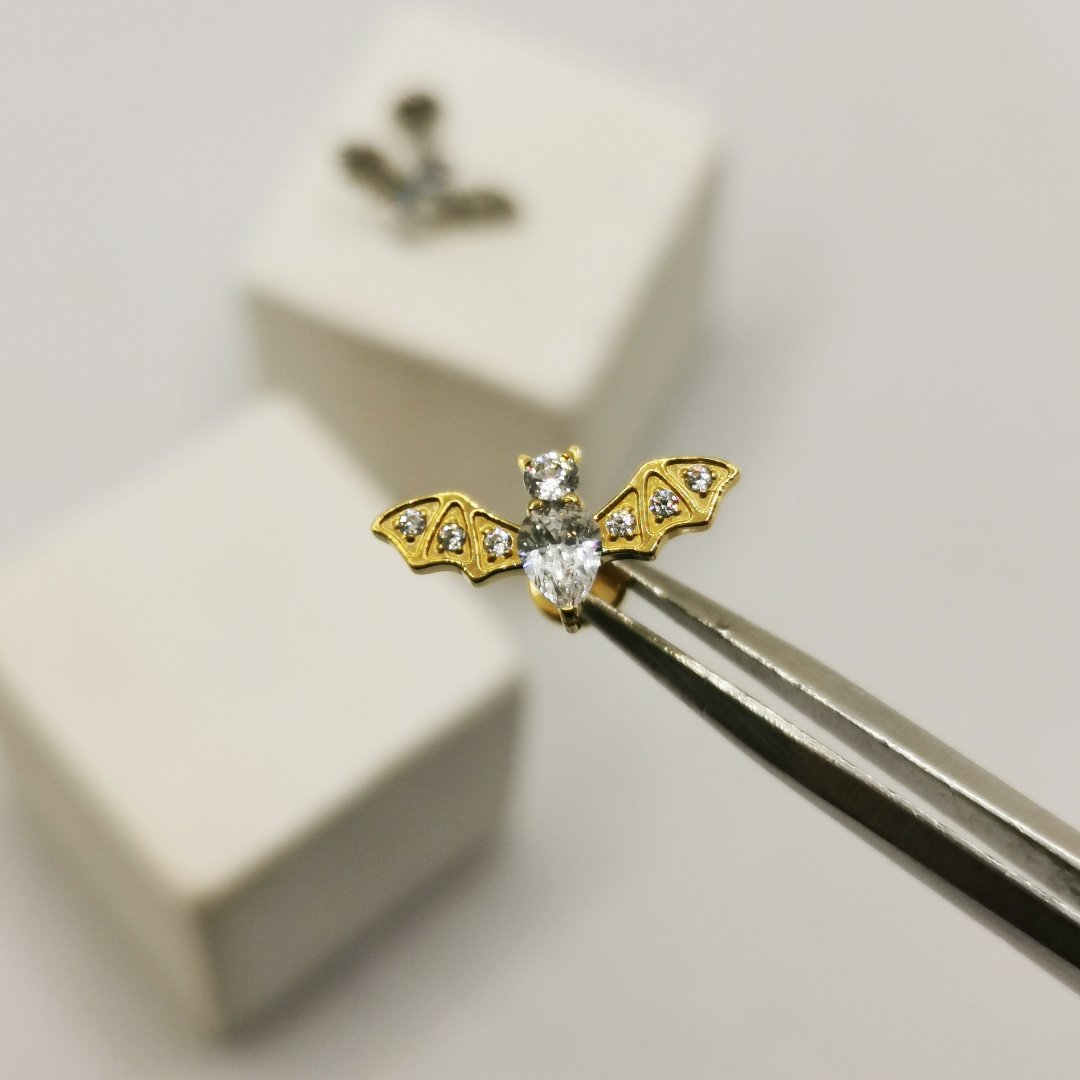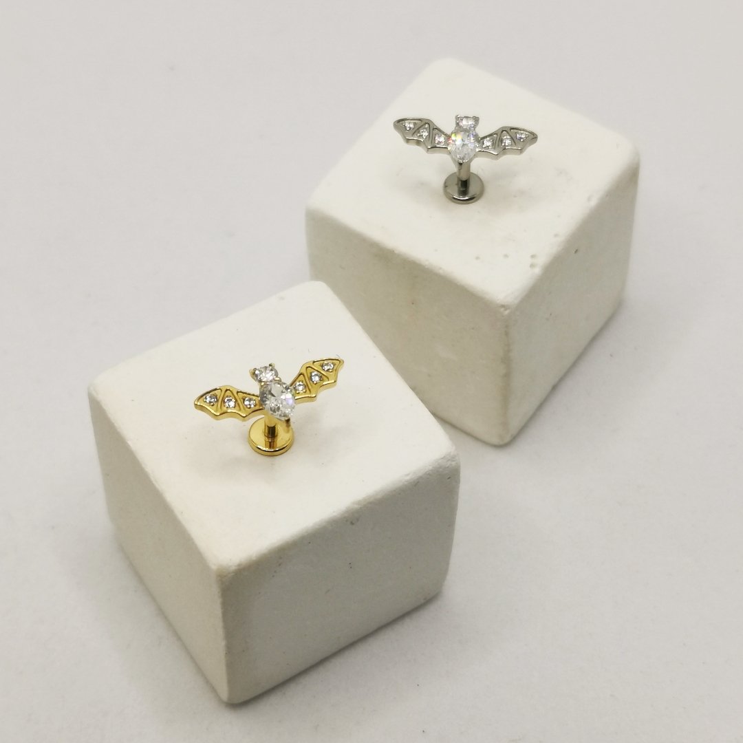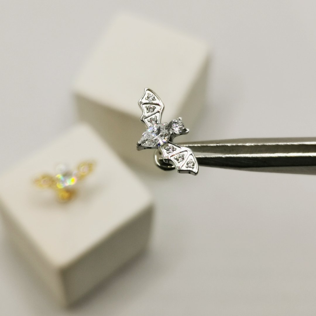 Abbraccia il lato oscuro con questo adorabile piercing a forma di pipistrello decorato con cristalli. Gothic chic e irresistibilmente carino, perfetto per Halloween tutto l’anno o per chi ama l’estetica dark.