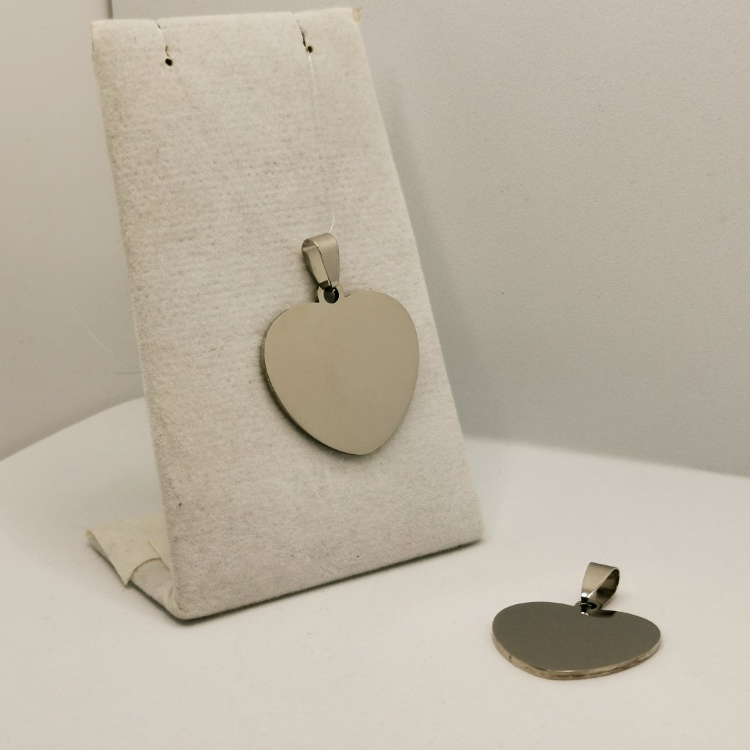 Medaglia cuore in acciaio che unisce la forma classica della medaglia al simbolo universale dell’amore. Un ciondolo romantico e personalizzabile per esprimere sentimenti profondi.