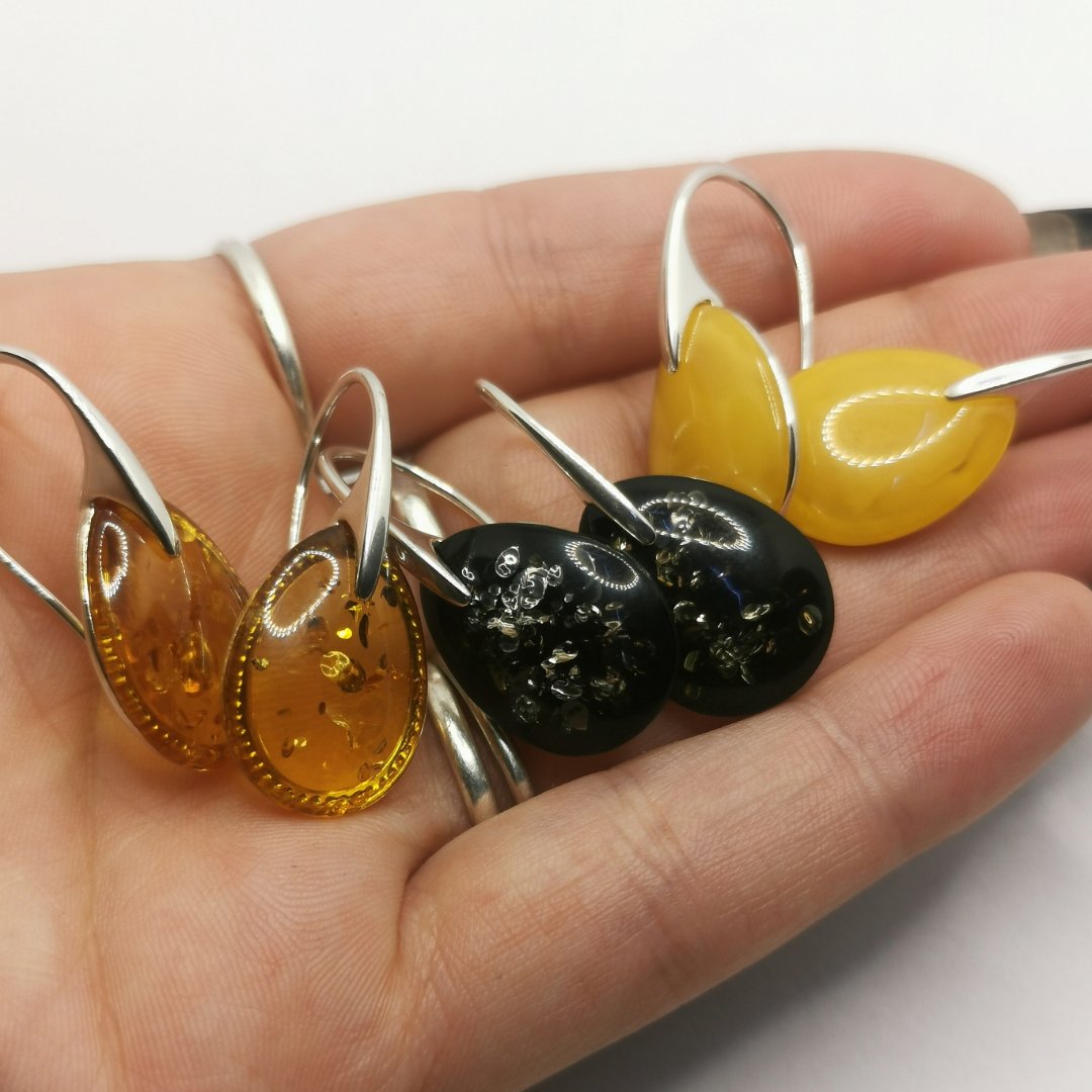 Orecchini Goccia forma classica Ambra Baltica argento.