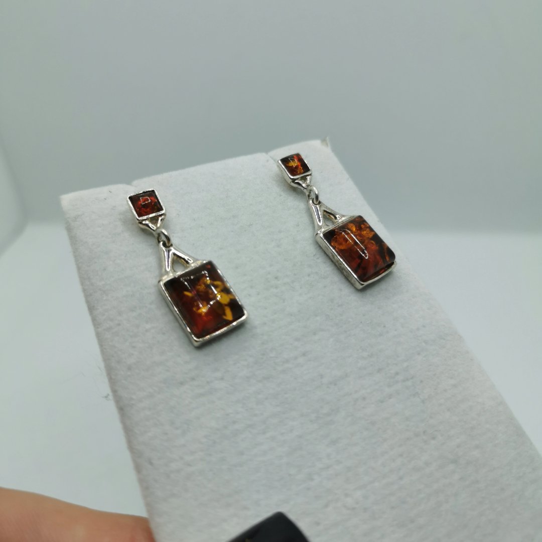 Orecchini Pendente Ambra gocce eleganti argento 925.