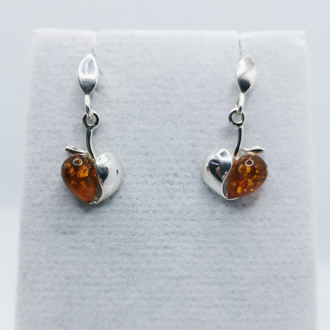 Piccoli cuori d’Ambra pendono elegantemente dai lobi, oscillando con grazia a ogni movimento. Questi orecchini combinano romanticismo e dinamicità.