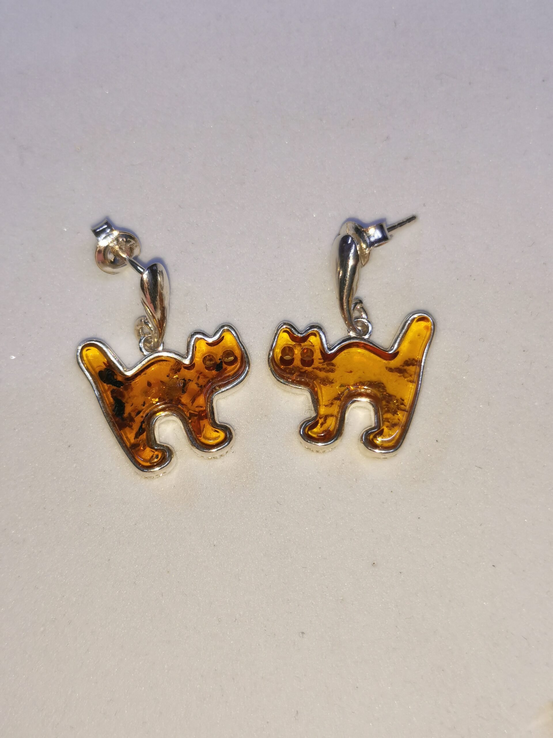 Orecchini Gatto in Ambra Baltica con farfallina argento.
