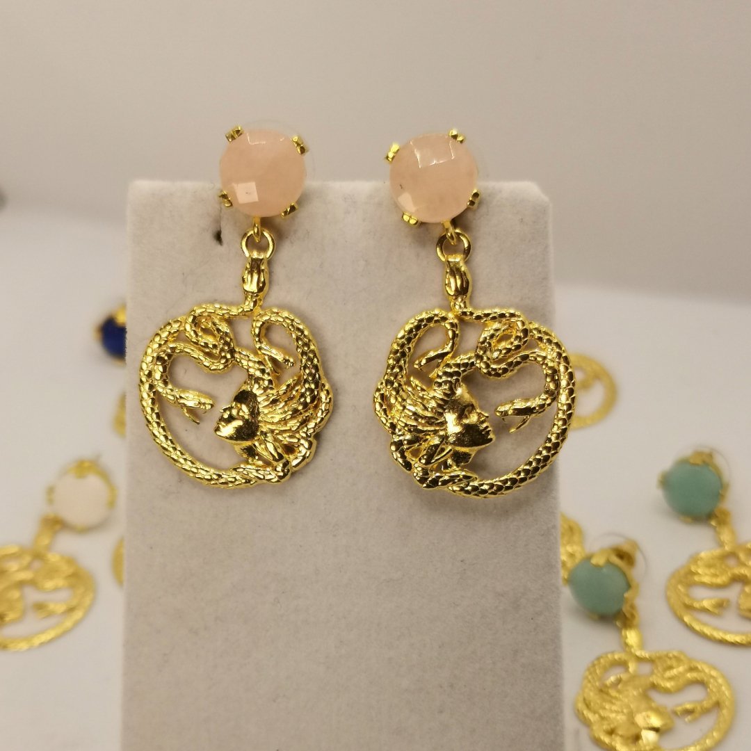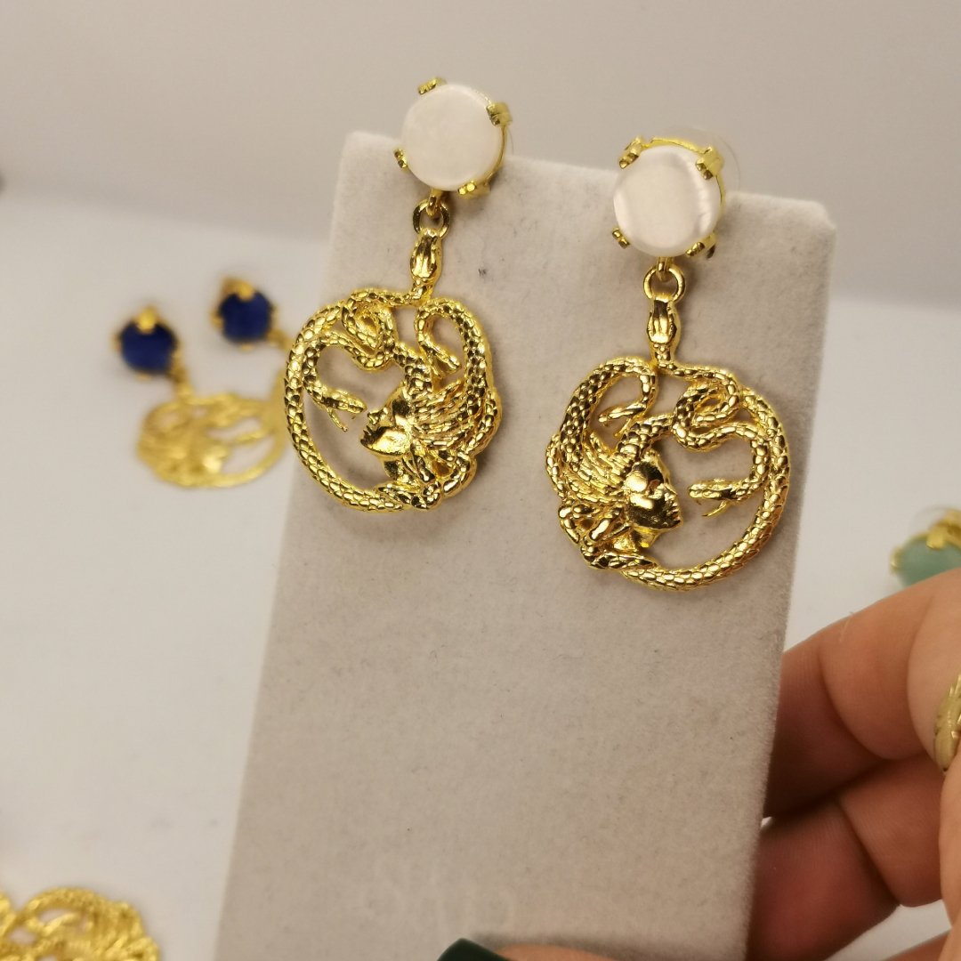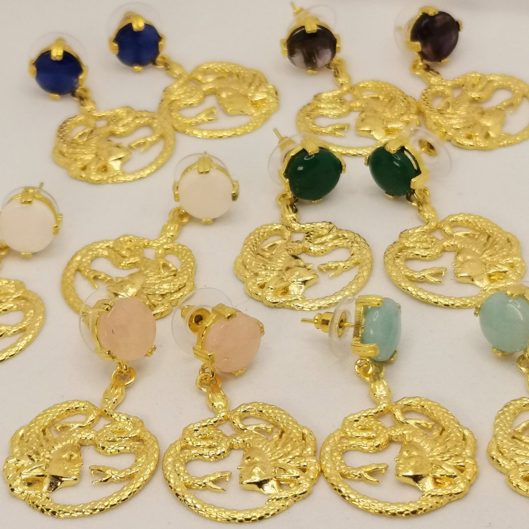 Misteriosi orecchini in ottone Medusa con agata naturale. Gioielli artigianali in ottone ispirati all’eleganza fluttuante delle creature marine.
