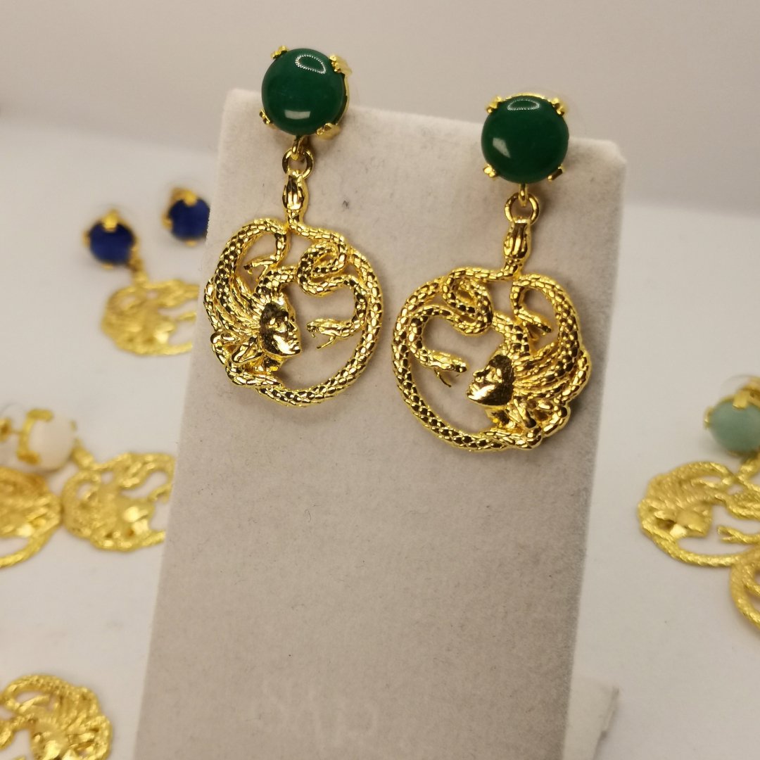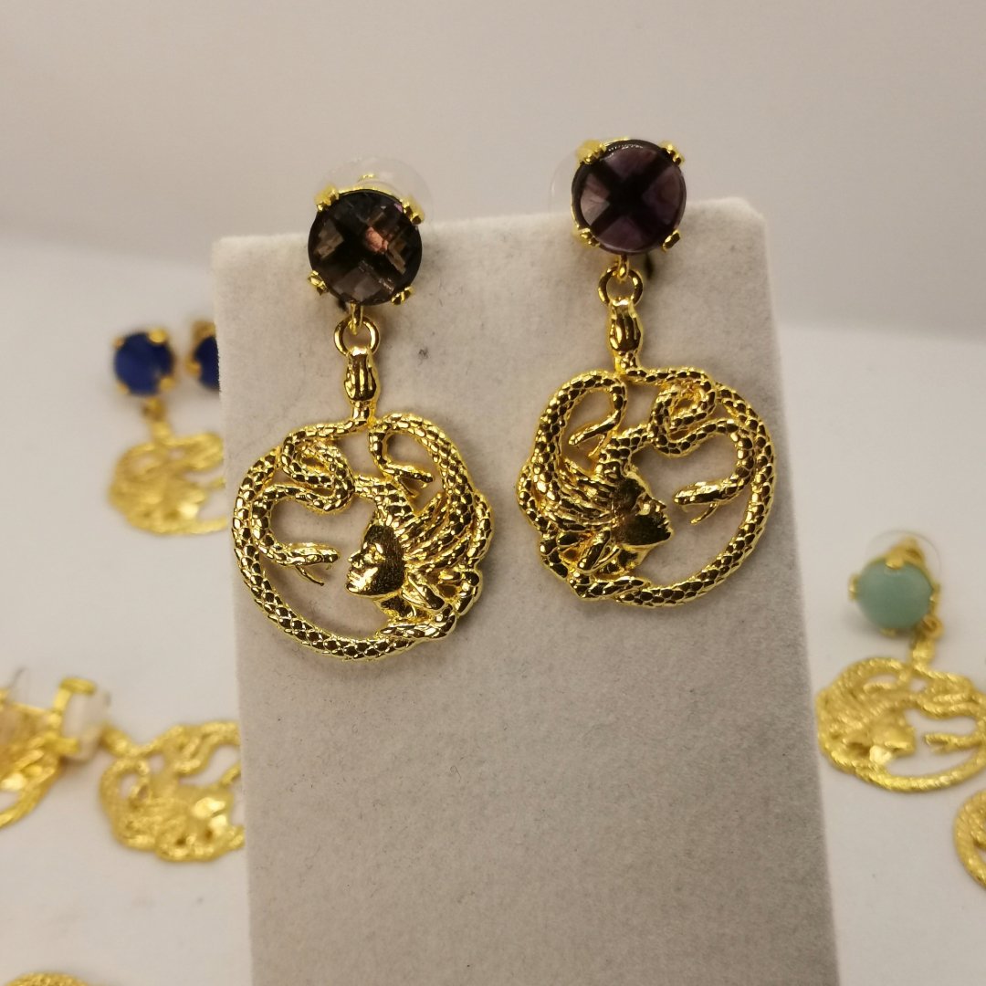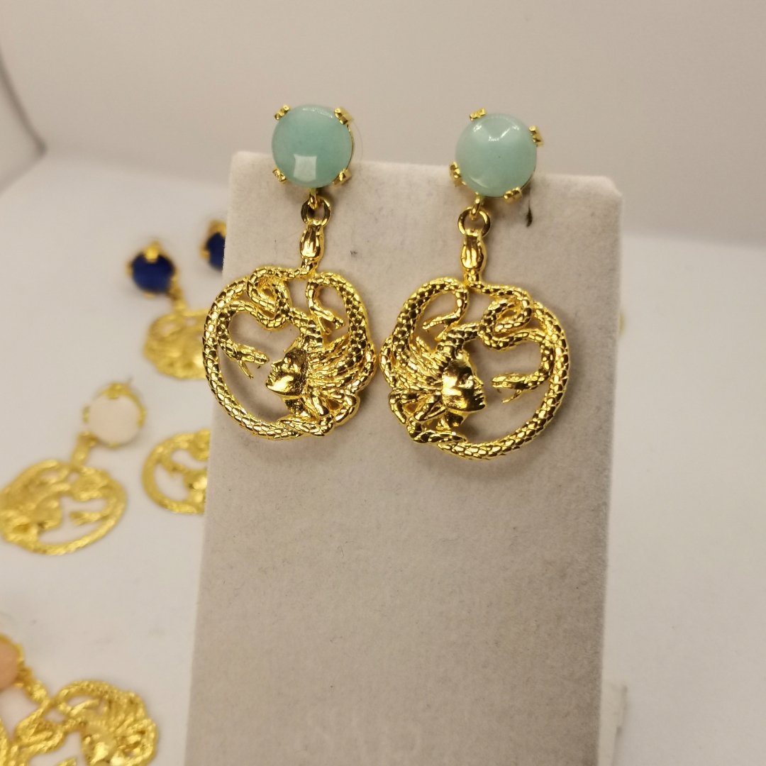 Misteriosi orecchini in ottone Medusa con agata naturale. Gioielli artigianali in ottone ispirati all’eleganza fluttuante delle creature marine.