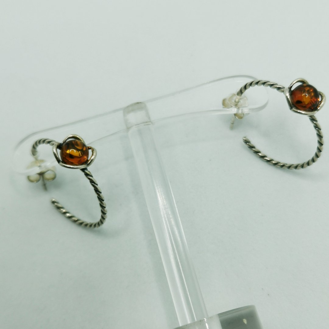Il semicerchio d’ambra crea la base, mentre il fiorellino in argento 925 aggiunge un tocco di poesia. È la fusione perfetta tra rigore e fantasia.