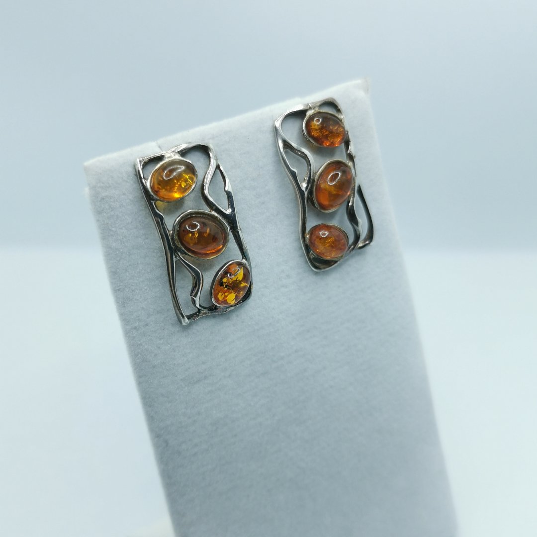 Orecchini Trio Ambra tre gemme per orecchio argento.