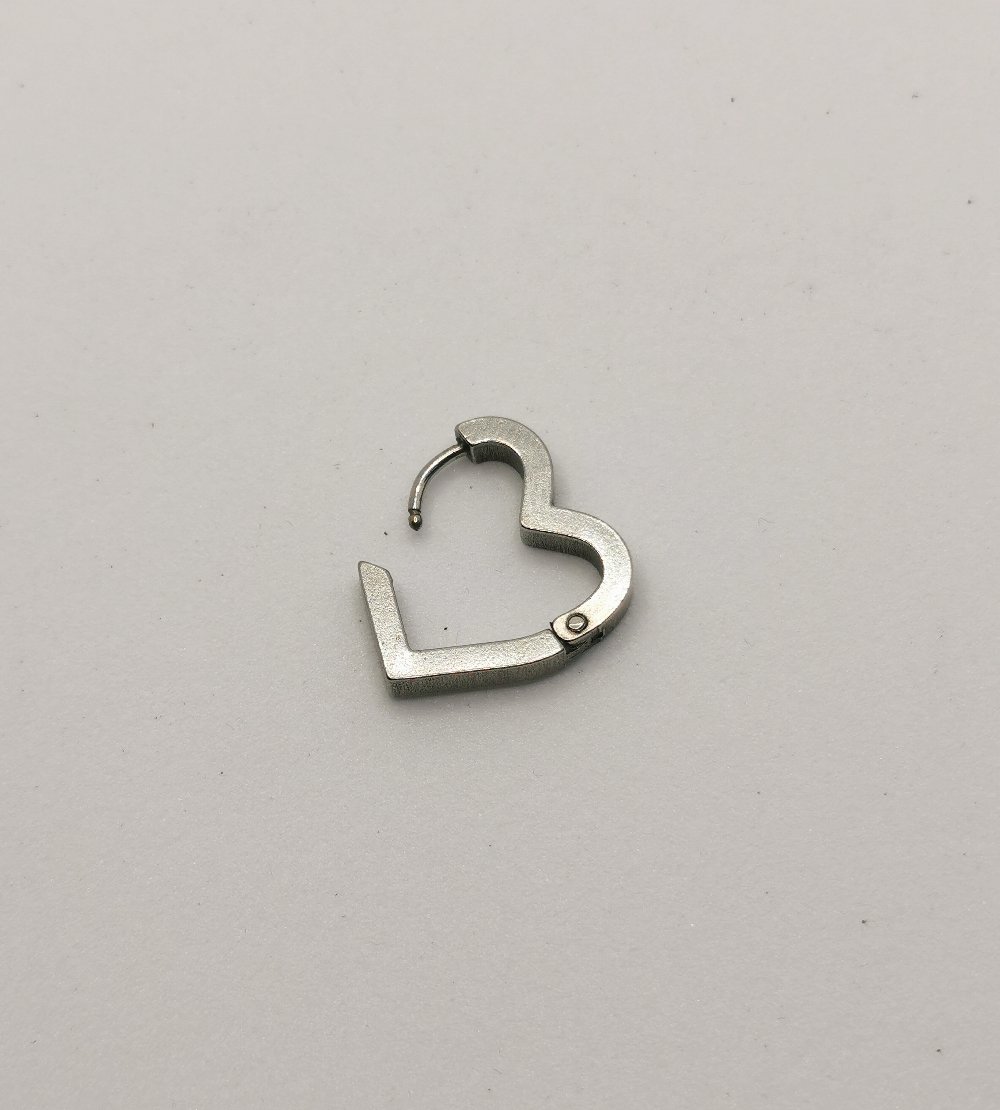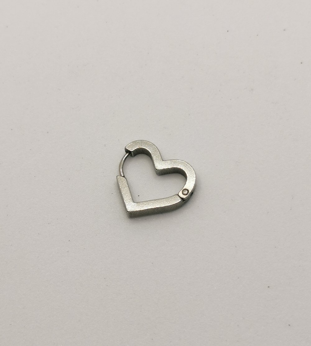Orecchino cuore in acciaio che porta il simbolo universale dell’amore al lobo. Un accessorio romantico e significativo per esprimere sentimenti con un tocco di originalità.