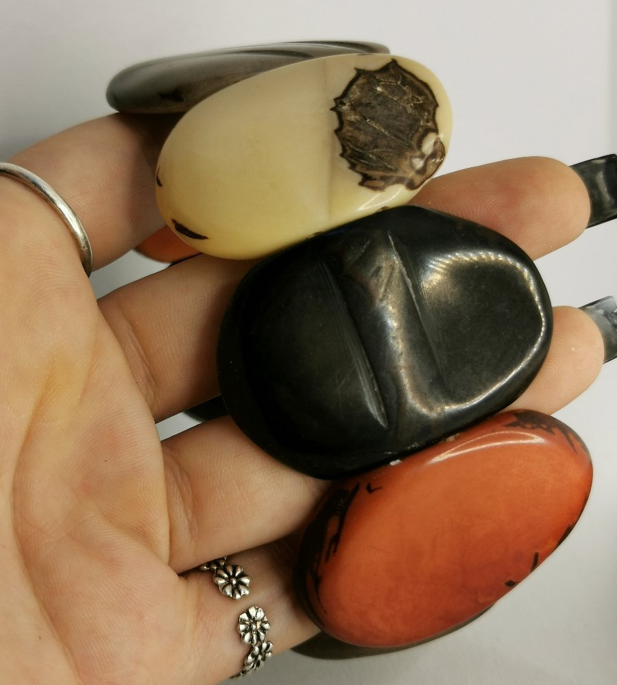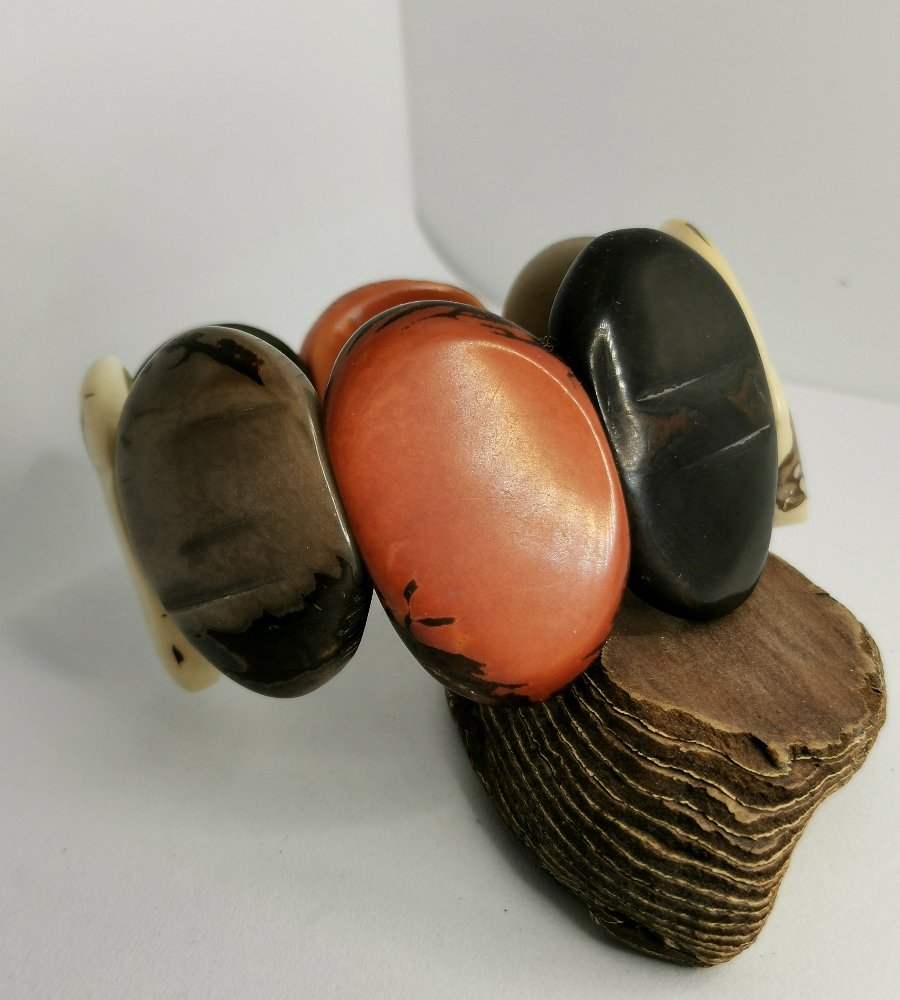 Raffinato bracciale in avorio vegetale, materiale naturale ed ecosostenibile ricavato dai semi della palma Tagua delle foreste sudamericane. Pezzo unico lavorato a mano con pigmenti naturali.