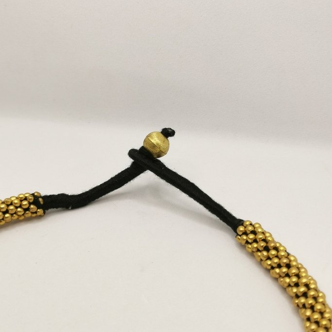 Elegante gioiello Pearls of brass in ottone lavorato. Creazione artigianale con elementi sferici che evocano la luminosità delle perle.