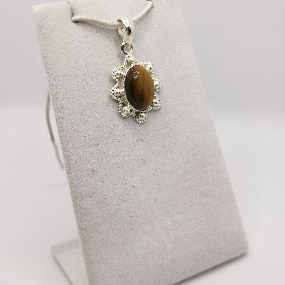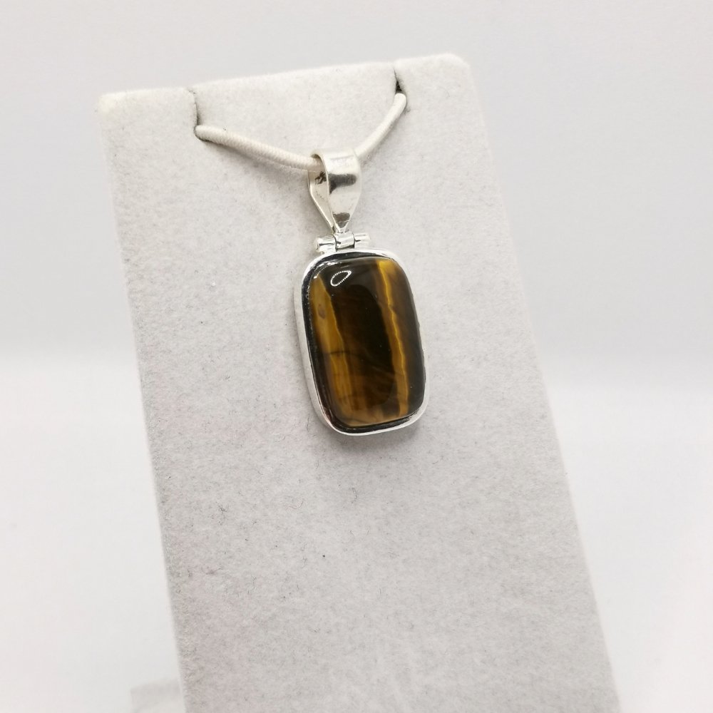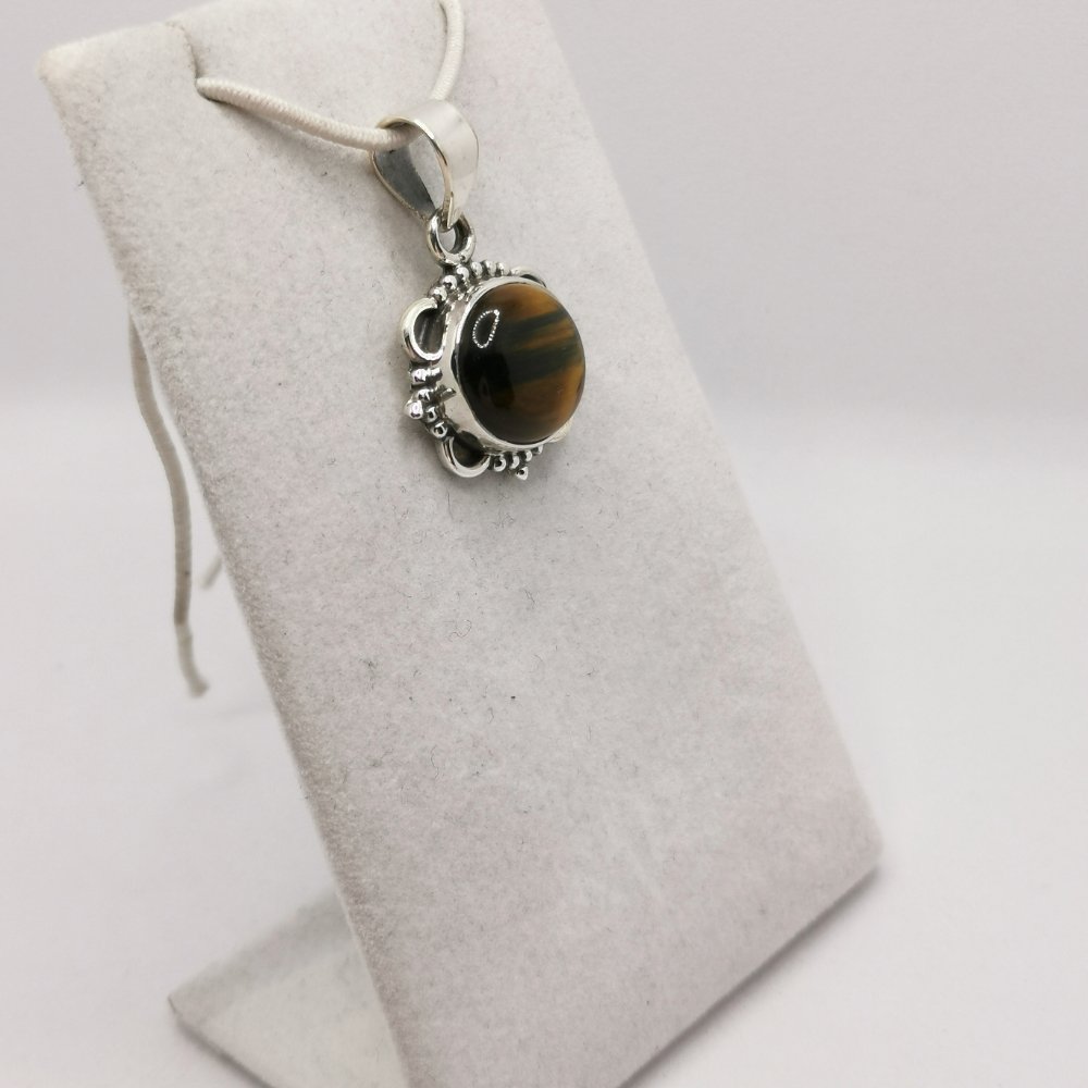 ciondolo in argento con occhio di tigre naturale in argento 925. Gioiello di qualità per chi cerca eleganza e raffinatezza italiana.