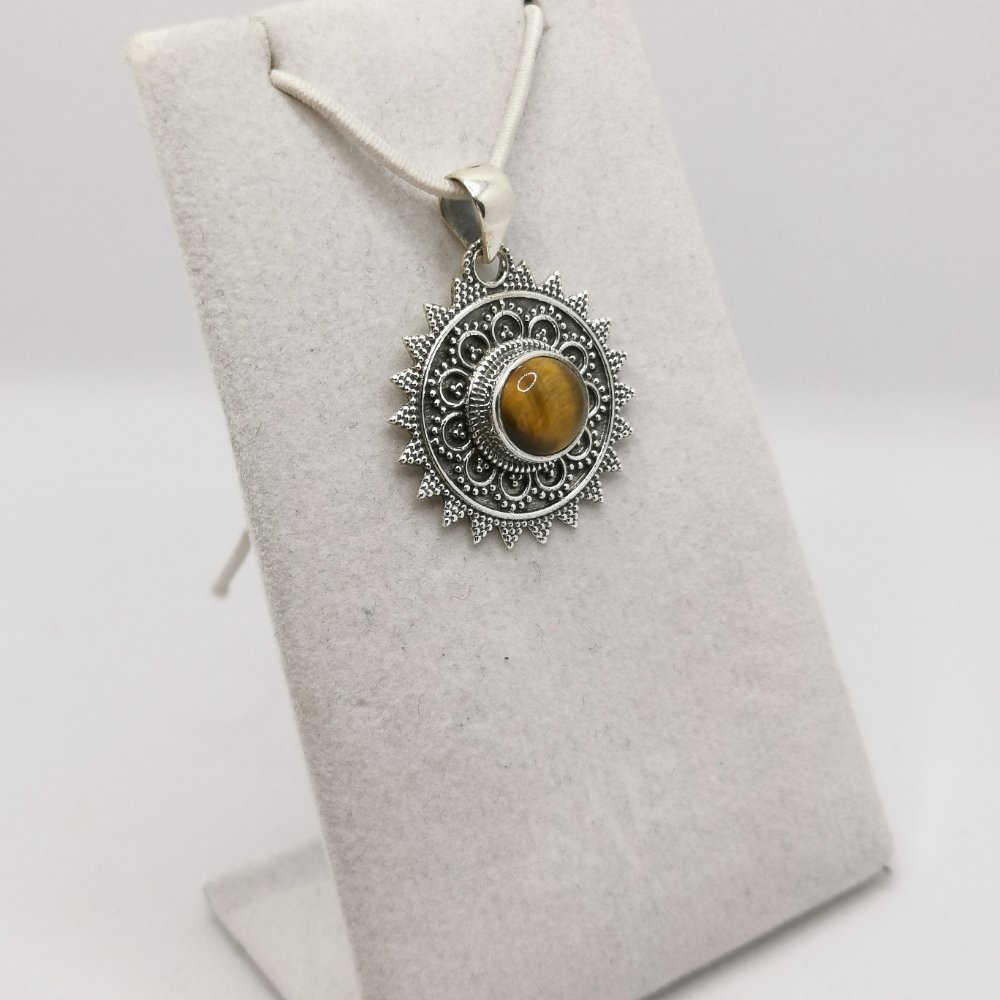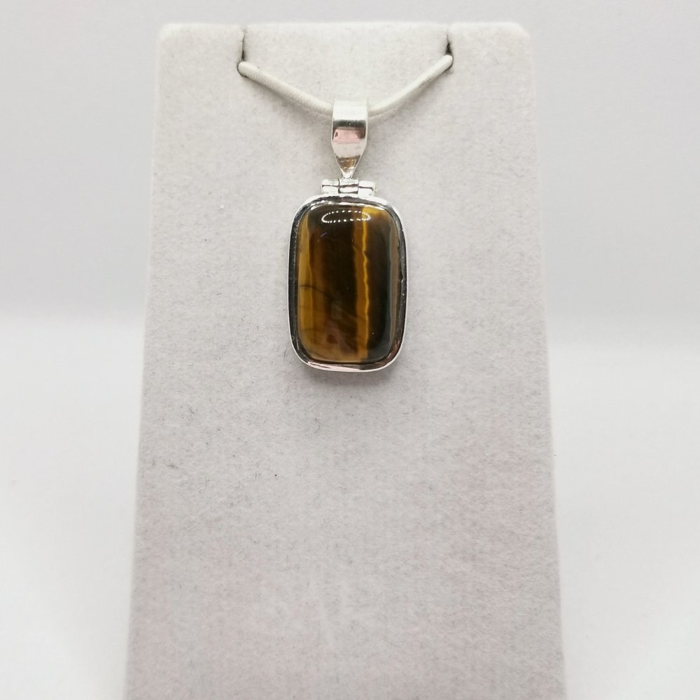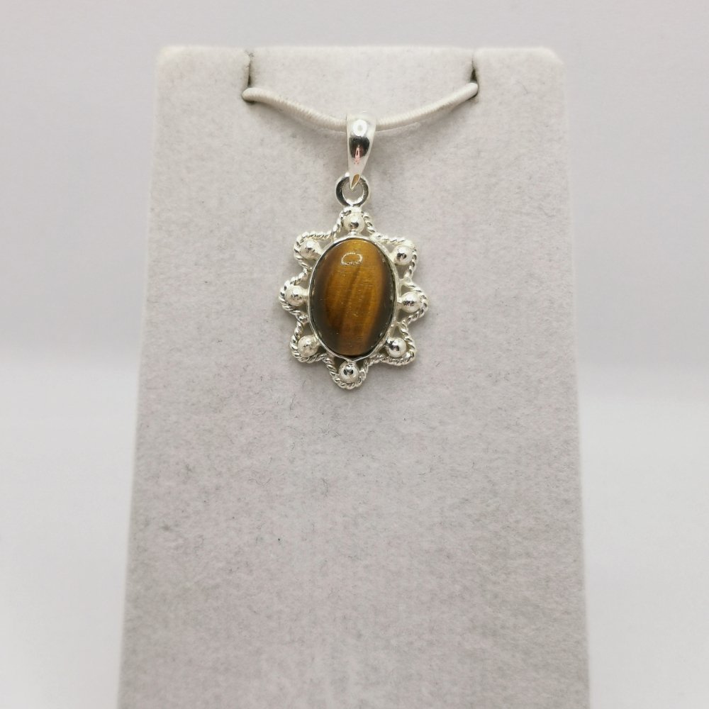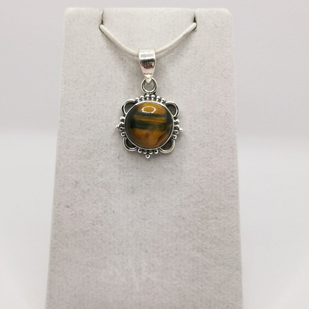 ciondolo in argento con occhio di tigre naturale in argento 925. Gioiello di qualità per chi cerca eleganza e raffinatezza italiana.