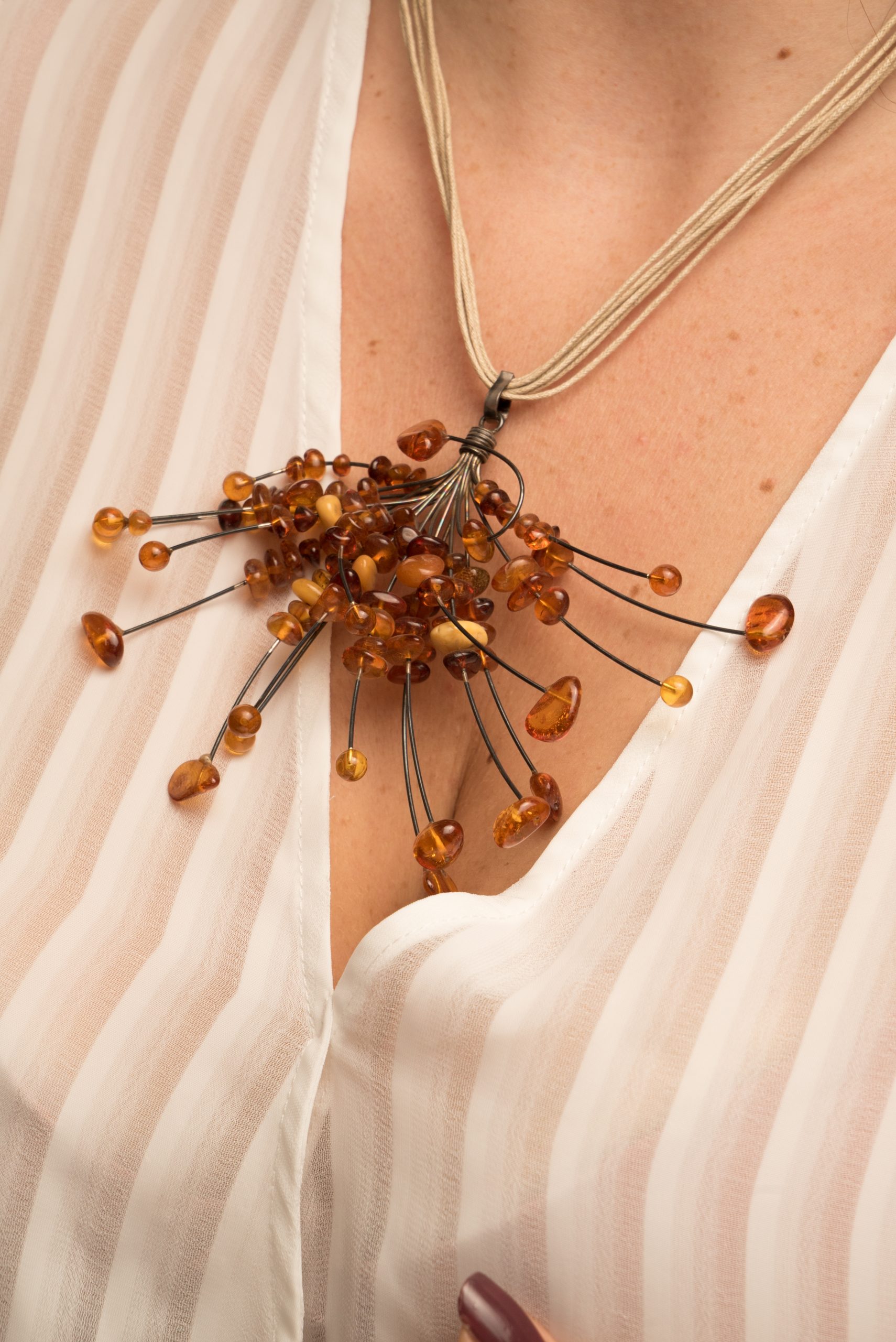 Collana Ramo in Ambra Baltica design naturalistico.