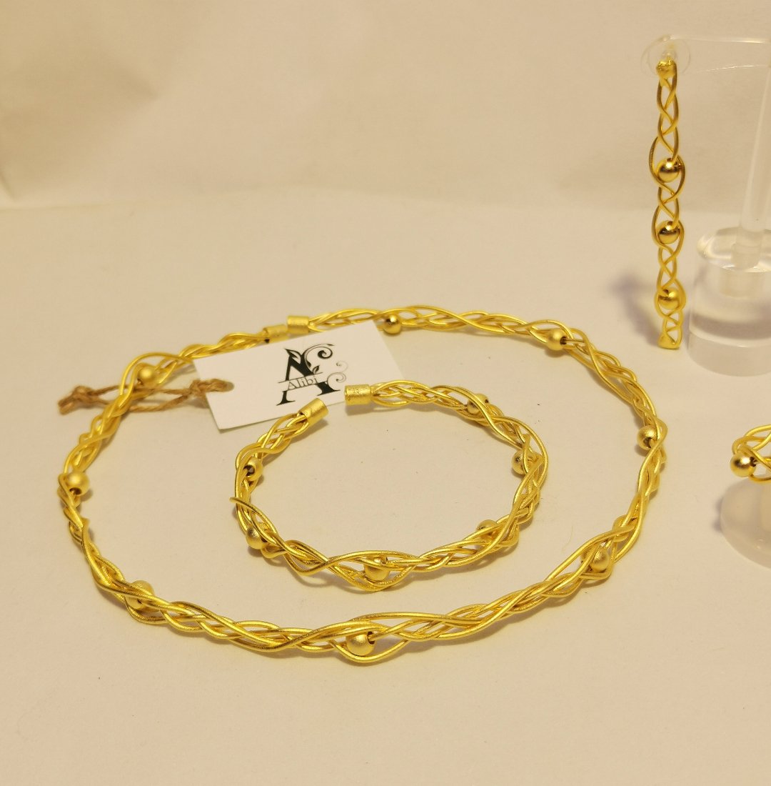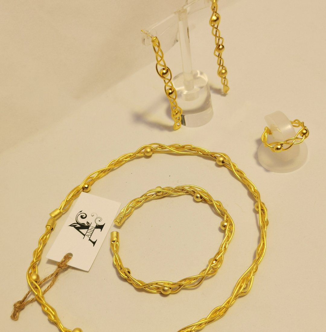 Questo Rigid braided wire – etnic style incarna l’essenza dello stile contemporaneo. Realizzato in lega di zama con una raffinata finitura naturale dalle sfumature calde, questo set nasce dalla sapiente lavorazione artigianale che caratterizza ogni nostra creazione. Parte della collezione Alibi, Il design è stato pensato per chi desidera accessori capaci di raccontare una storia, pezzi unici che sanno farsi notare senza mai risultare eccessivi.