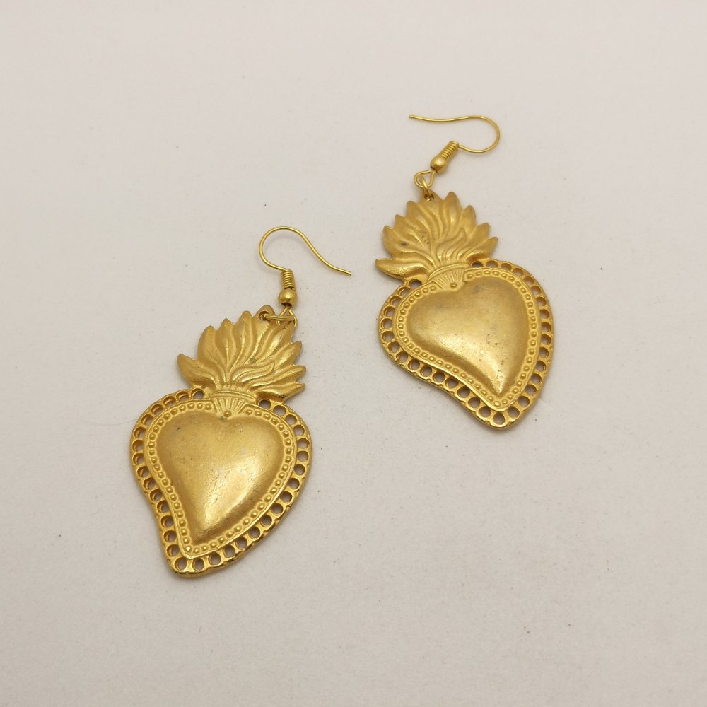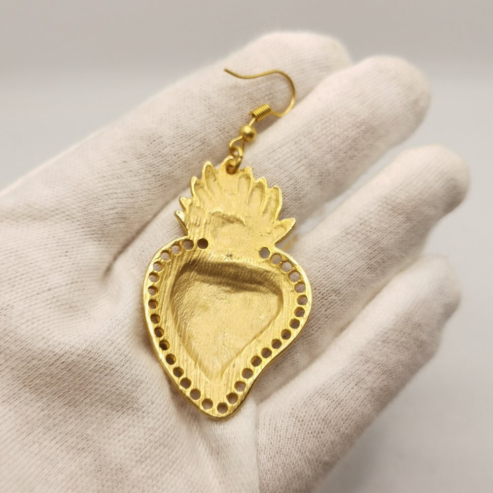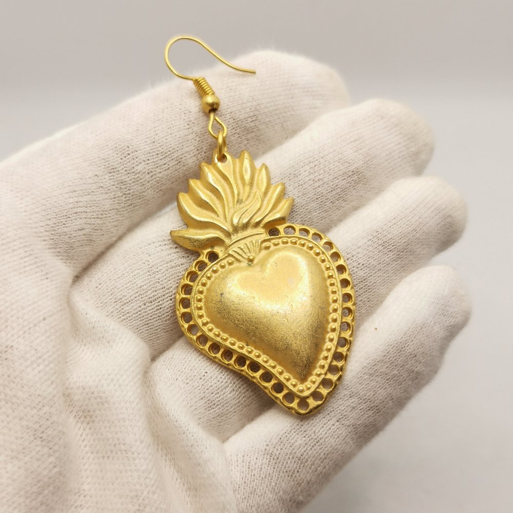 orecchini a forma di cuore sacro realizzati in lega di zama con finitura dorata e gancio ad amo. Ideale per chi ama esprimere la propria personalità attraverso i dettagli.