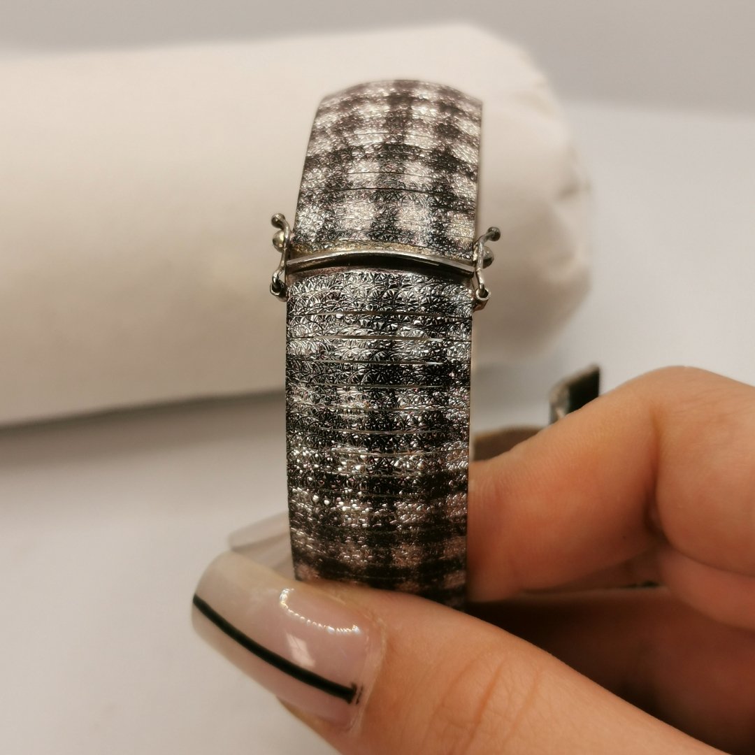La misura regolabile permette di adattare perfettamente il gioiello alla tua corporatura. Per mantenere inalterata la brillantezza dell’argento nel tempo, si consiglia di conservare il gioiello in un luogo asciutto, lontano da umidità e agenti chimici come profumi e creme. Pulire periodicamente con un panno morbido in microfibra per rimuovere eventuali residui. Scopri la nostra collezione completa di gioielli in argento per trovare altri pezzi unici che completino il tuo stile personale.