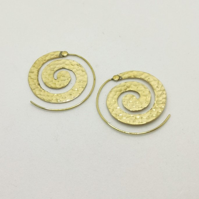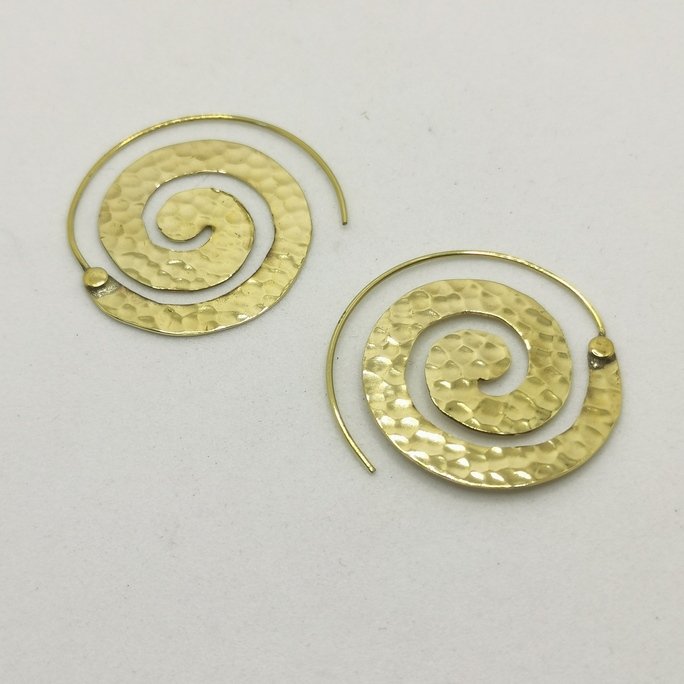 Ipnotici orecchini in ottone Spiral in ottone avvolgente. Gioielli artigianali che catturano l’eternità della forma spiraliforme.