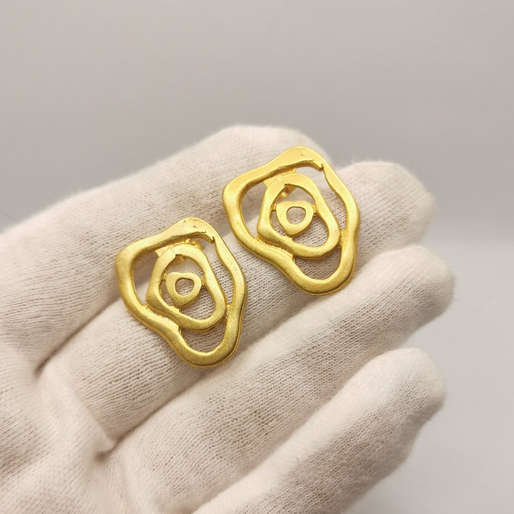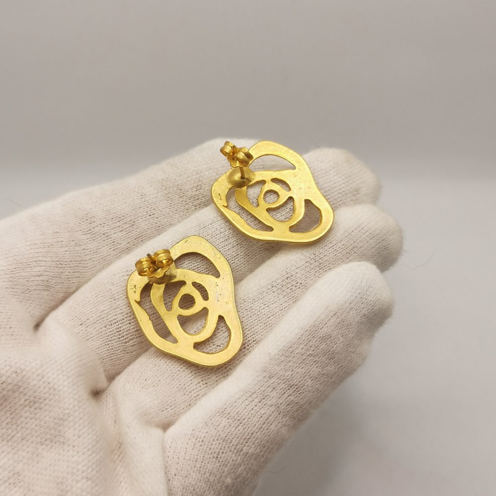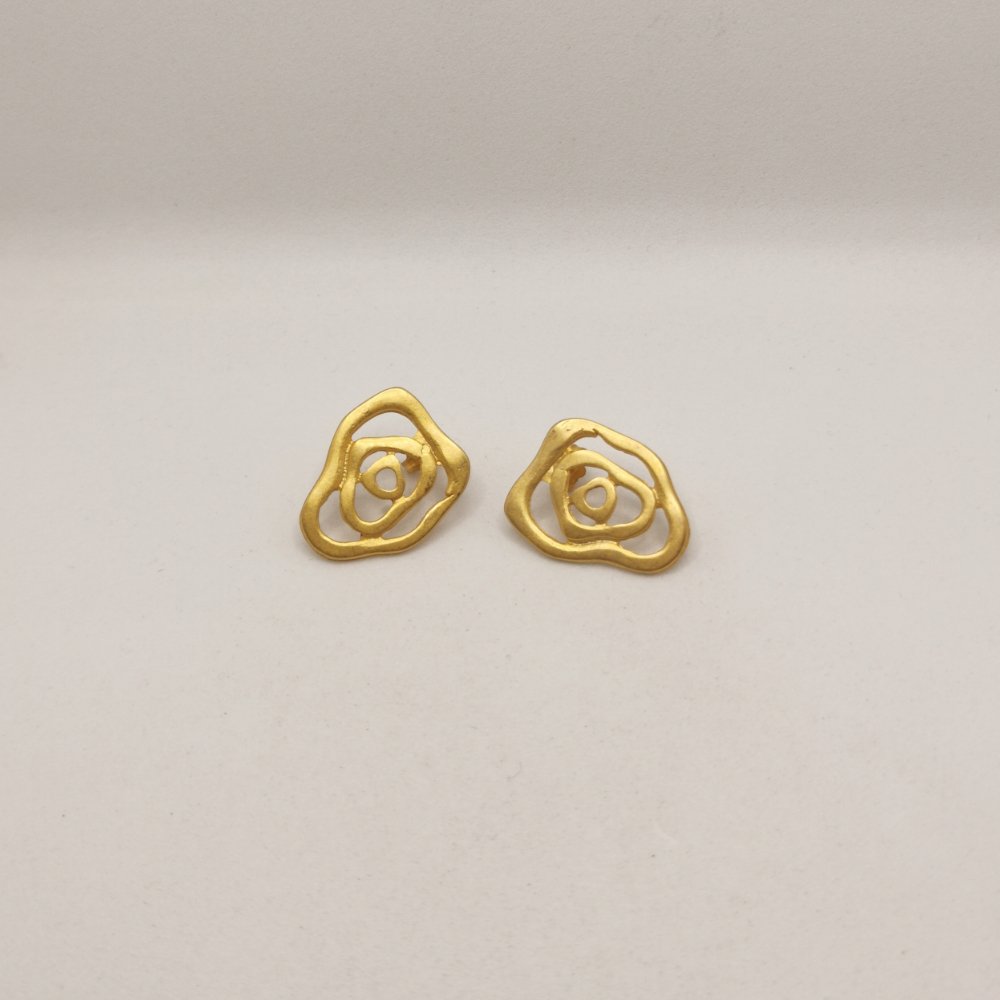 Elegante orecchini dalle linee morbide in lega di zama, impreziositi da una finitura dorata, con chiusura a farfallina. Un tocco di stile che illumina ogni outfit con discrezione.
