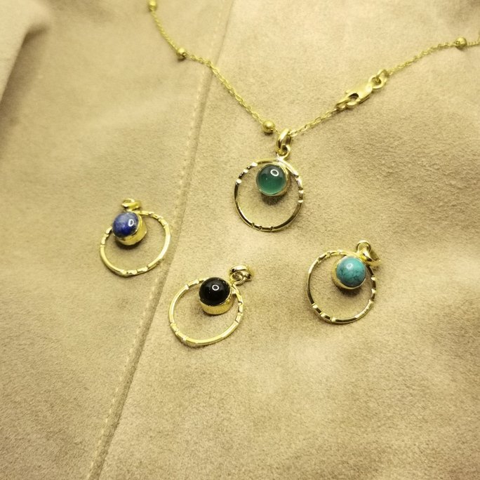 Naturale ciondolo in ottone Stone con pietra incastonata. Gioiello artigianale in ottone che valorizza la bellezza delle gemme naturali.