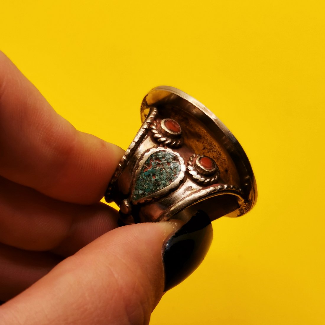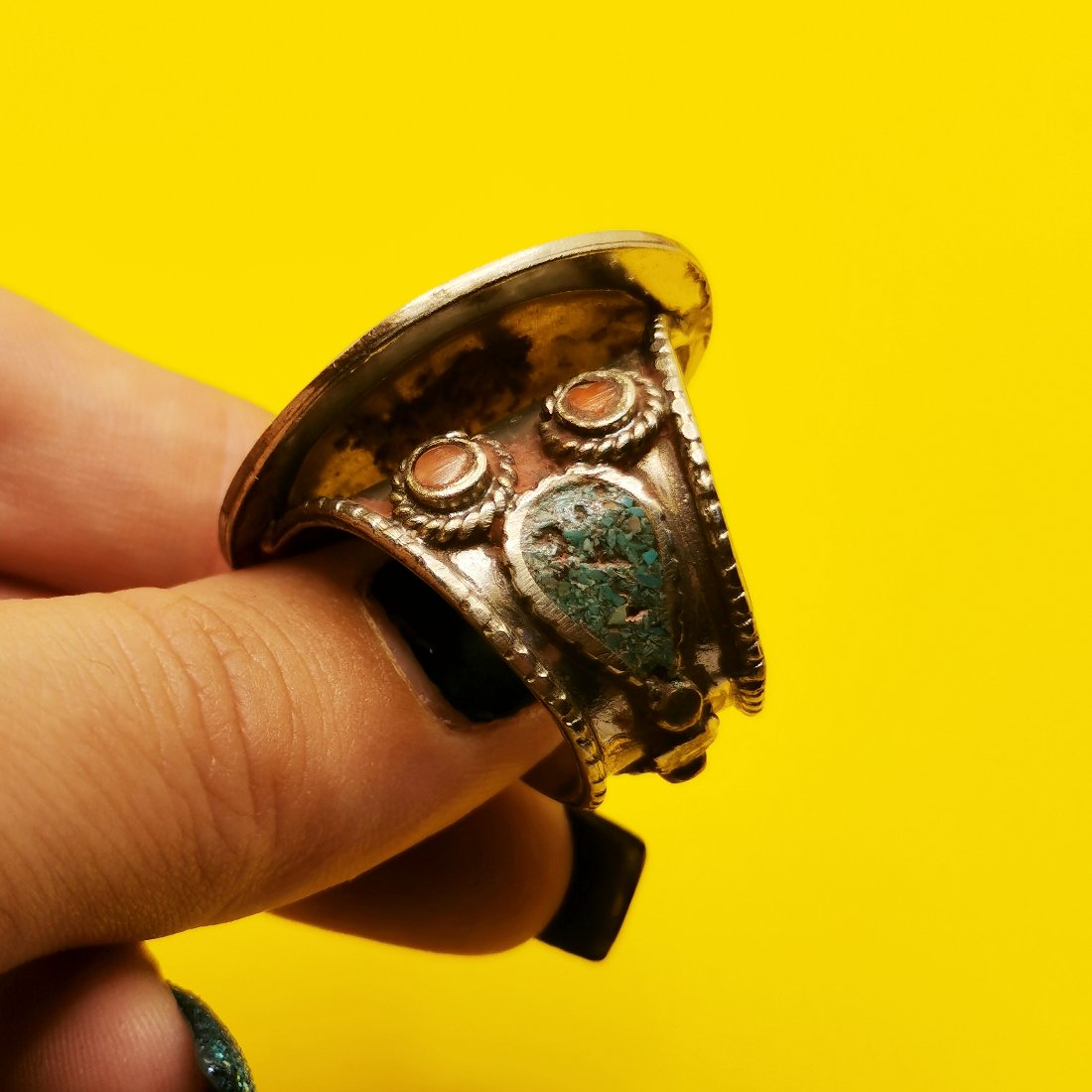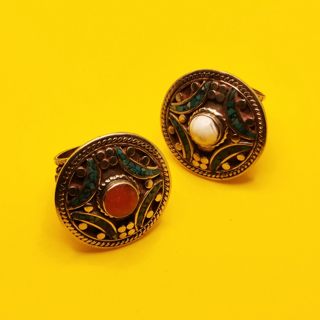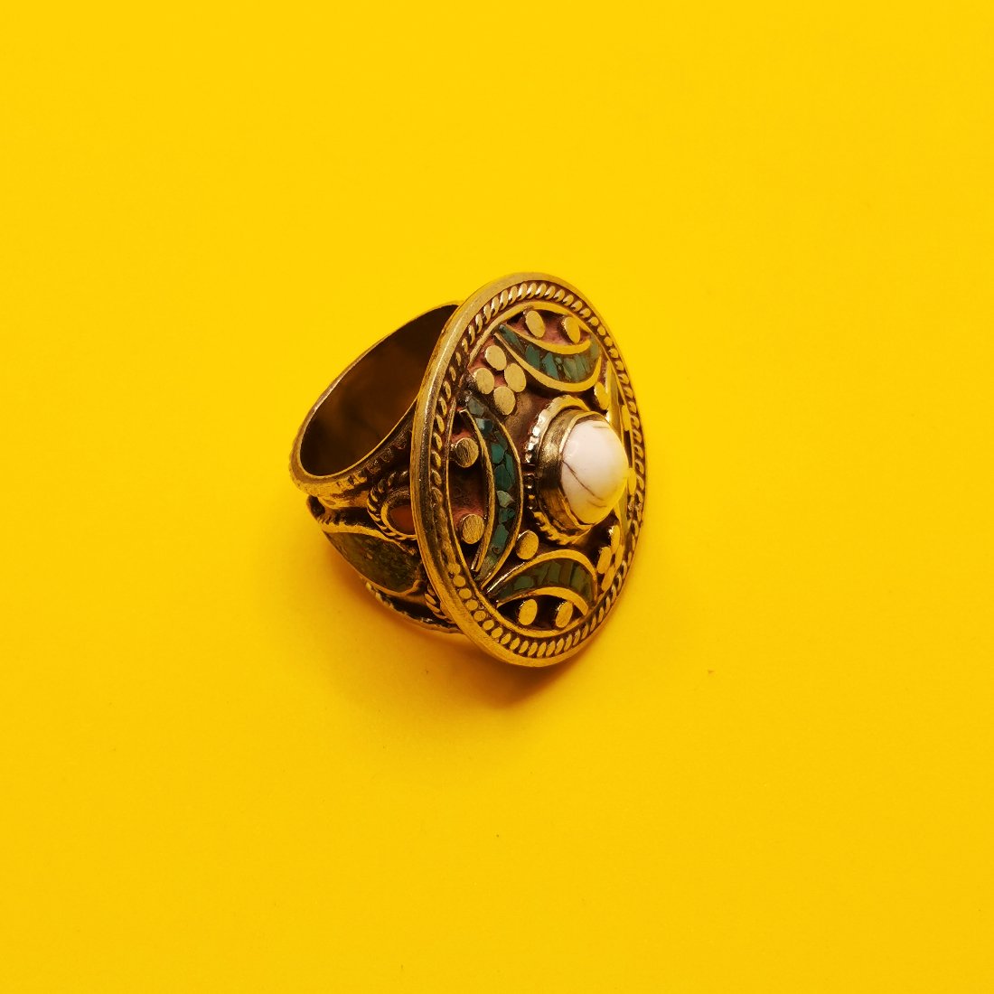 Anello in lega di ottone anallergico con pietre naturali quali turchese, ambra rossa e diaspro bianco