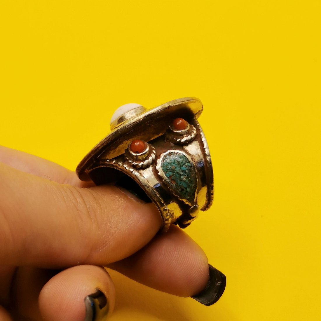 Anello in lega di ottone anallergico con pietre naturali quali turchese e diaspro bianco