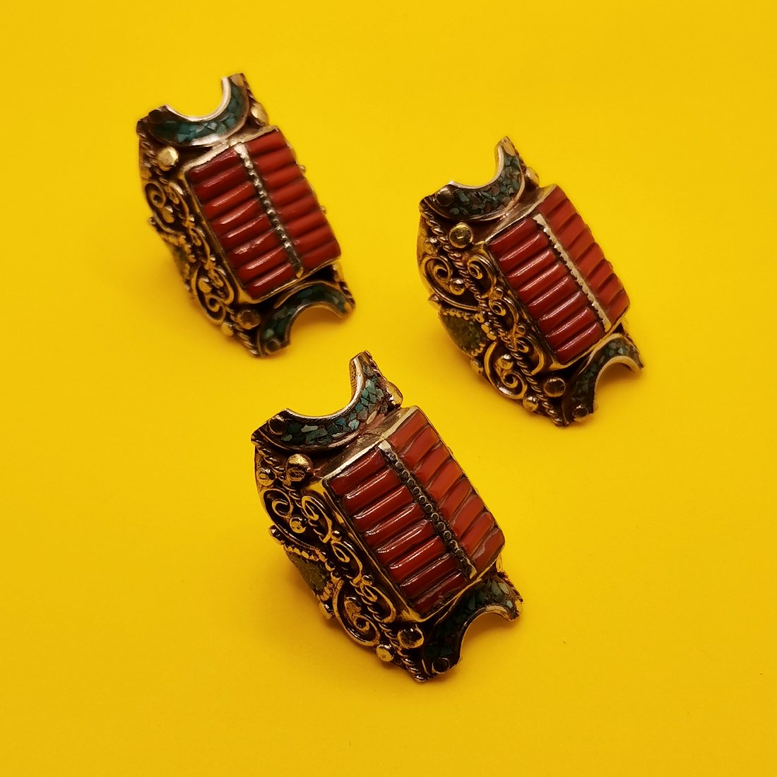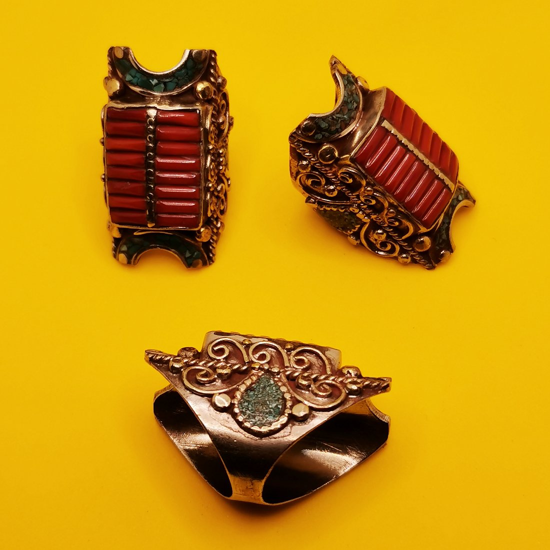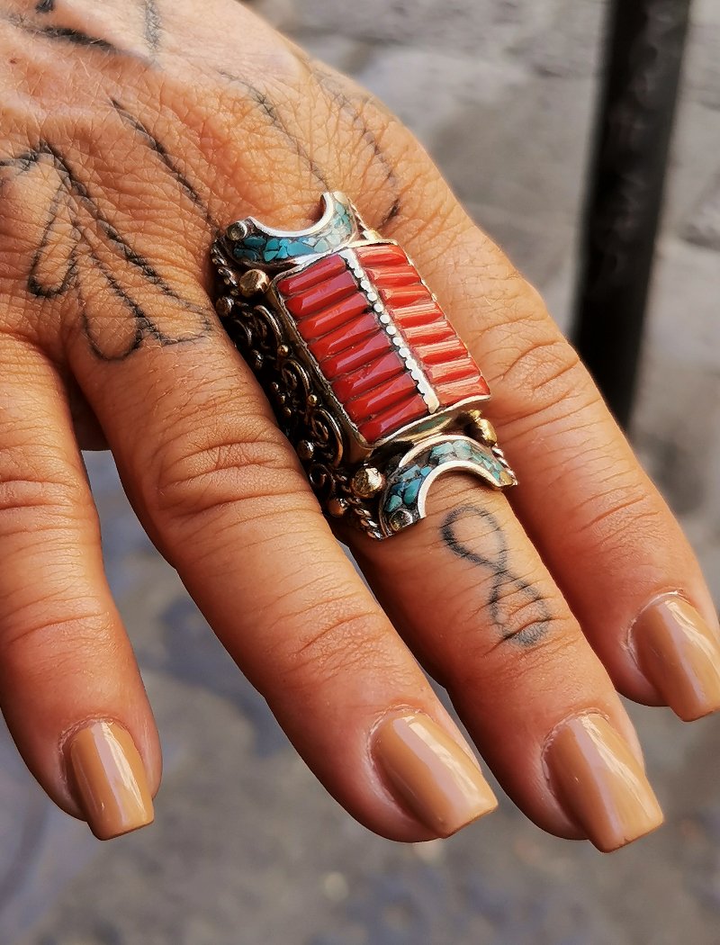 Anello in lega di ottone anallergico con pietre naturali quali turchese e corallo