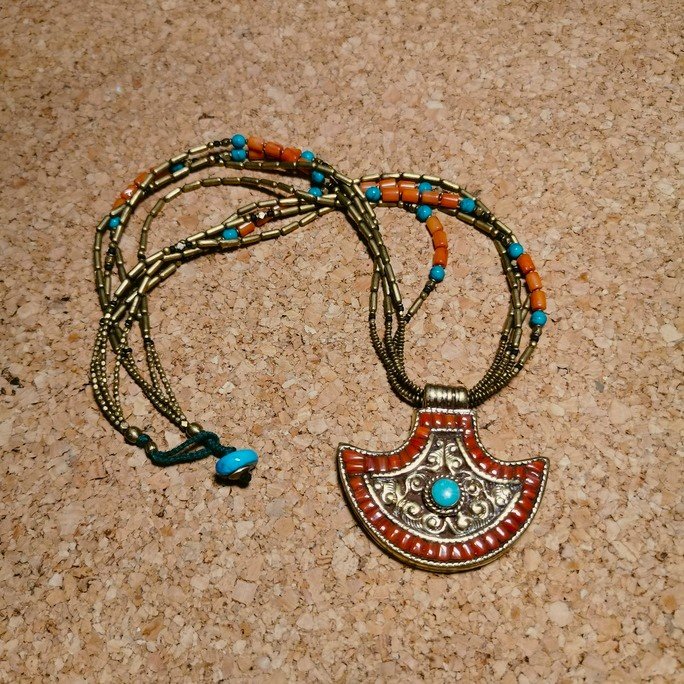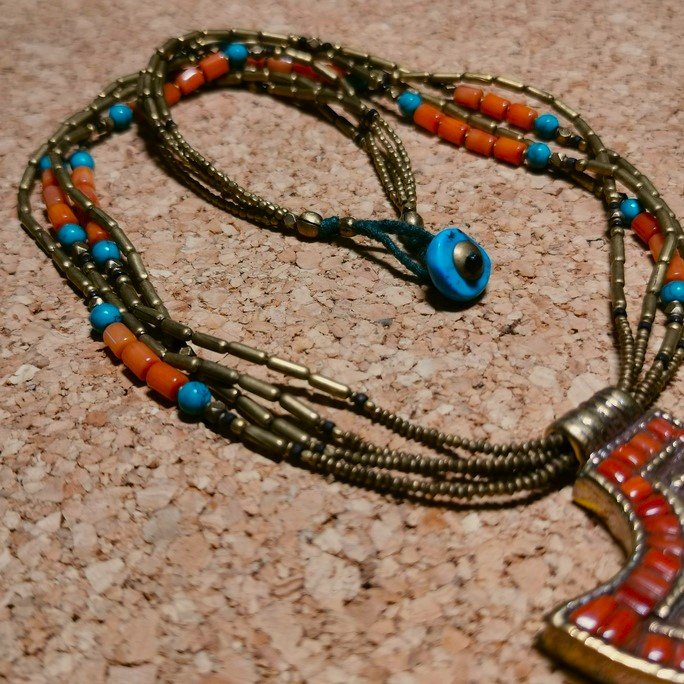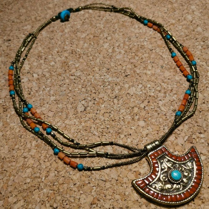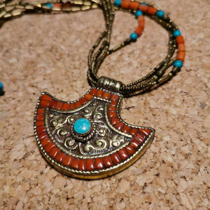tibet, lega di ottone, collane, corallo bambù, turchese, ambra rossa, pietre naturali, pietre, pietra, stone, stones, brass, necklace, necklaces, coral, handmade, flag