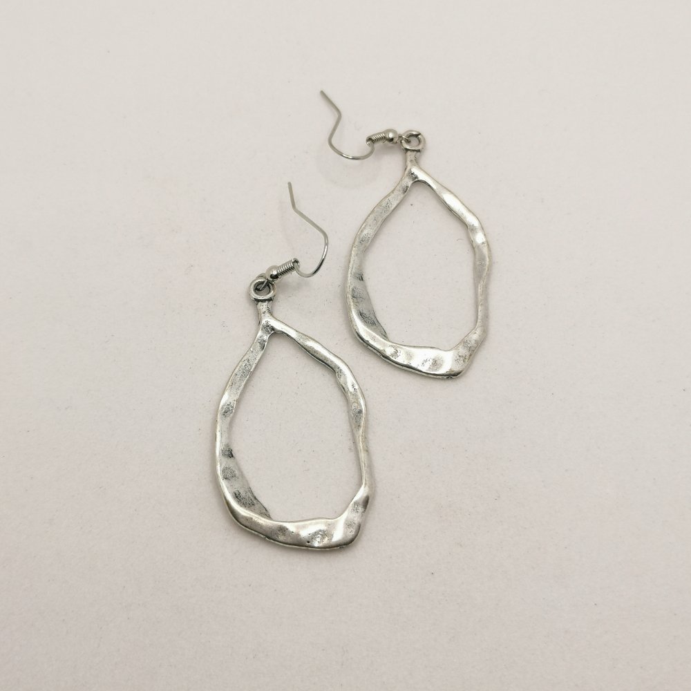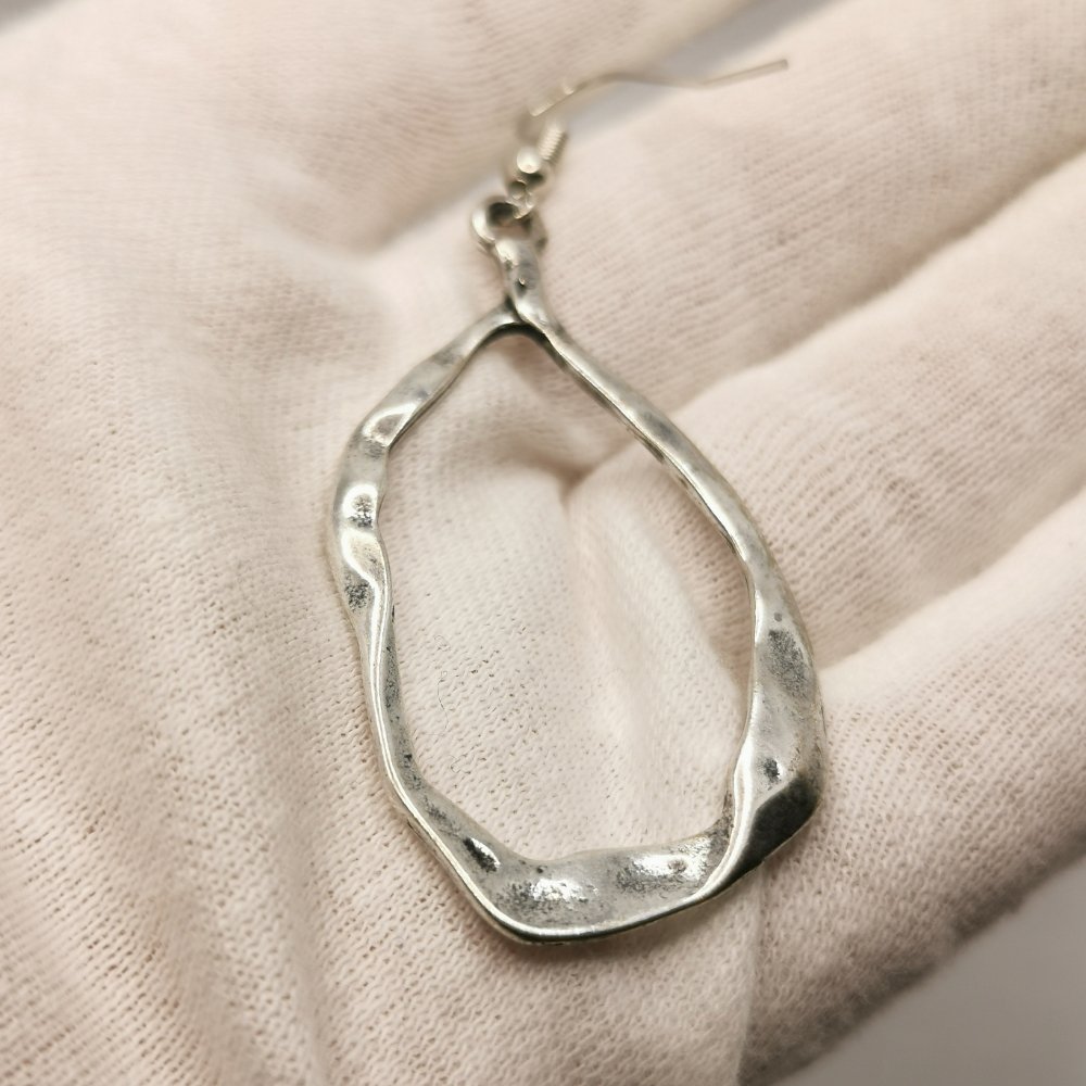 orecchini dalla forma ovale leggermente martellati realizzati in lega di zama con finitura naturale, con chiusura a gancio.