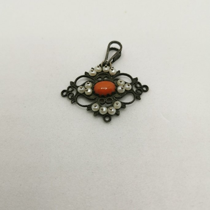 • Ciondolo corallo e perle naturali
