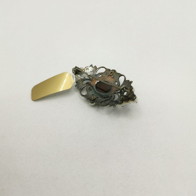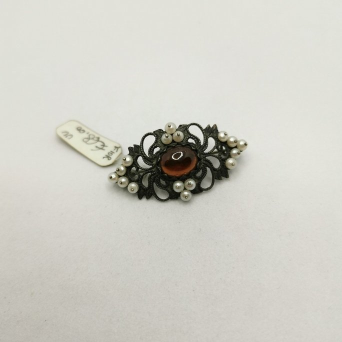 • Spilla con granato e perle naturali