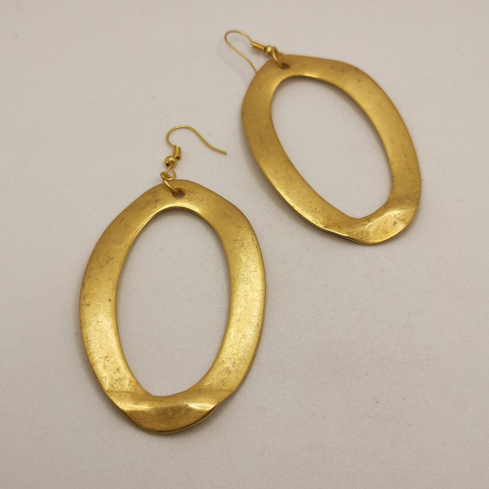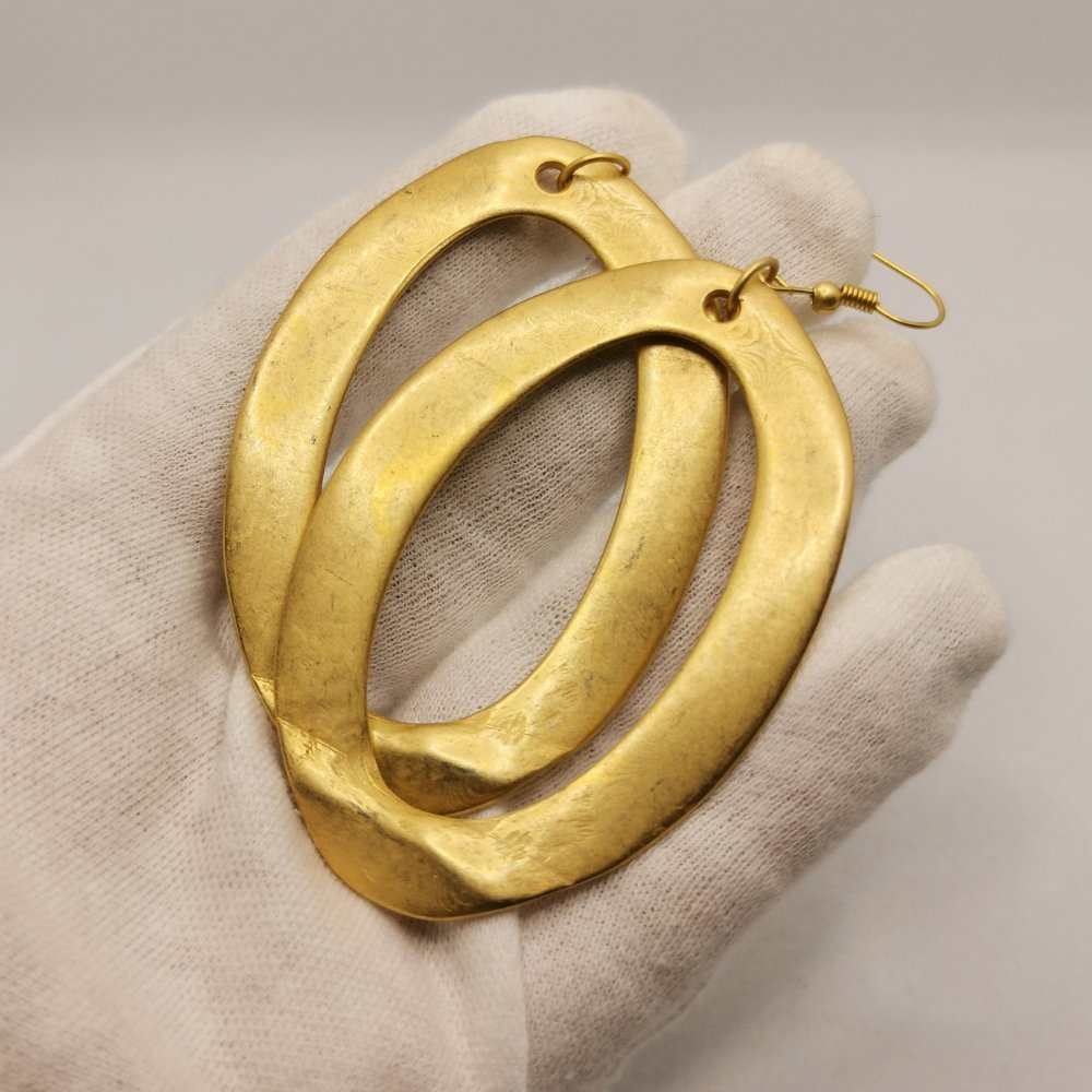 Questi orecchini in lega di zama dalla finitura dorata, con chiusura a gancio. Un accessorio dal carattere deciso che sa distinguersi con eleganza.